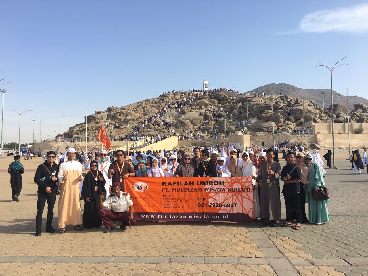 Alhamdulillah, rombongan umrah Multazam Wisata hari ini bisa mengunjungi Jabal Rahmah. Menyaksikan dari dekat kondisi bukit berbatu yang panasnya minta ampun. Maklum, jarang sekali tumbuhan yang hidup di sini.